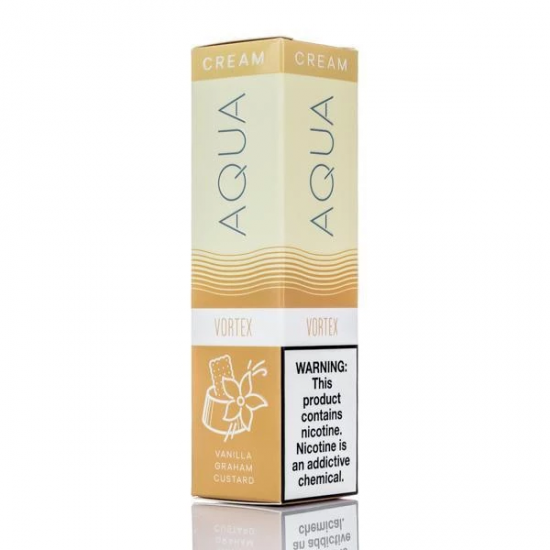 Aqua Cream Vortex E-juice showcases each aspect of a sweet creamy vanilla graham custard. With the subtle sweetness of honey and cinnamon sugar from the graham cracker meeting the creamy goodness of vanilla custard.When you inhale, that rush of warm, smooth vanilla rushes across your tongue. Even the aroma is intoxicating. As your mouth starts to water, you’ll get that sensual creaminess that slowly saturates each taste bud. Then, the familiar hints of buttery graham crackers hit the spot while sprinkles of spicy cinnamon and tasty sugar dance on the palate. When you finally exhale, a drizzle of honey seals the deal. Its sure to be a unique and flavorful addition to your juice lineup.
