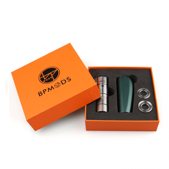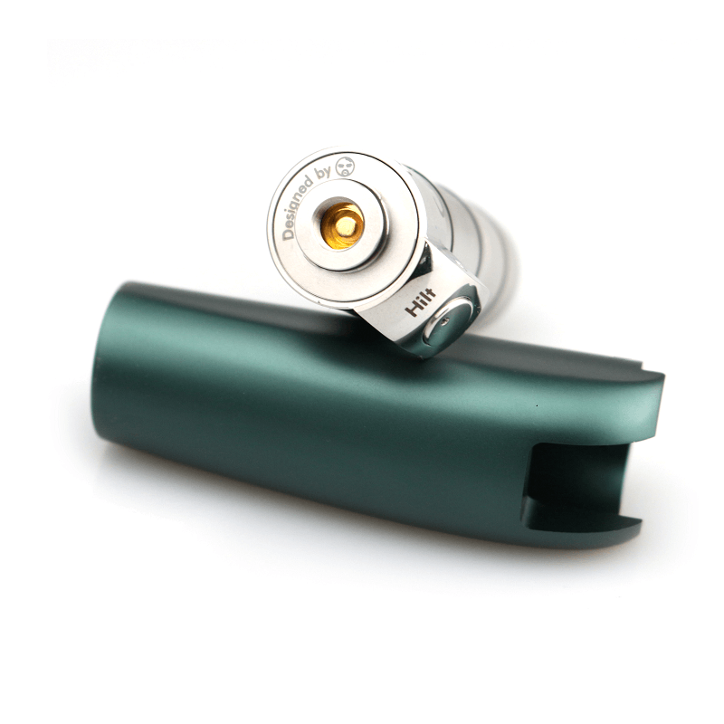 BP Mods Hilt Mosfet Mod is a constant voltage vape mod device jointly cooperation by BP Mods and DOVPO. This is a device that is more suitable for mouth-to-lung vapers. Compared with the bulky box mod, Hilt Mosfet Mod is relatively small and portable. Hilt Mosfet Mod combination is very interesting, which it can also be disassembled and rebuilt to match up. The entire Hilt Mosfet Mod consists of a replaceable shell, internal main body, an extended battery tube, and a battery cover. The casing on the material adopts an anodizing process, feels very comfortable on the hand. The upper part of the Mod is the stainless steel main body with a battery tube for 18350. And the body integrated a fire button and 510 platforms. The Fire button has an LED indicator. Double click the power button to see the battery usage. Below the Mod is the extended battery tube for 18650. The two-section design of the battery tube makes it possible to be compatible with 18650 and 18350 cells.