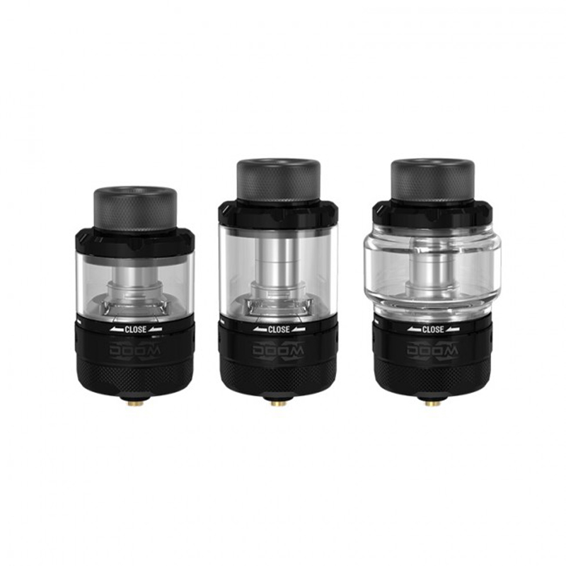Damn Vape DOOM X Mesh RTA is an upgraded version of DOOM RTA. It retains the unique features of its predecessor and adds huge capacity and a juice flow control system. It is a 26mm diameter mesh rebuildable tank that provides anti-dry-hits and leak-proof, for all Mesh enthusiasts, from beginners to veterans. The perfect combination of mesh coil and RBA tank. According to the installed tank tube, the volume of DOOM X Mesh RTA will be different: 2ml/5.5ml/8ml. The enclosed bubble glass tube can be used to achieve a huge capacity of 8mL. Refills on the DOOM X Mesh RTA can be facilitated by the threaded top fill system mounted at the top, unscrewing the top to reveal a set of two bean-shaped fill ports. When filling your Doom X, make it upside down first to let the juice underneath flow out, then closed the juice flow ring and refill your tank. In addition, the juice flow control glass offers an adjustable feature to control the amount of juice going to the cotton wicks within.