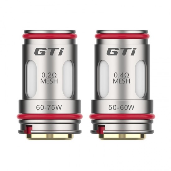 Coil resistance: GTI 0.2ohm Mesh Coil (60-75W, Best: 70W), GTI 0.4ohm Mesh Coil (50-60W, Best: 55w), GTI 0.15ohm Mesh Coil (75-90W, Best:85W)
